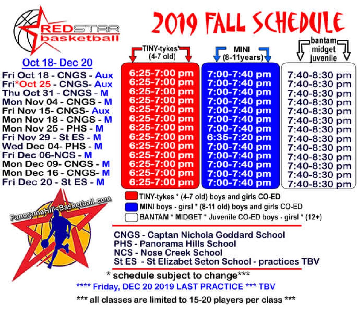 RED STAR BASKETBALL 2019 Fall schedule is attached in this post
