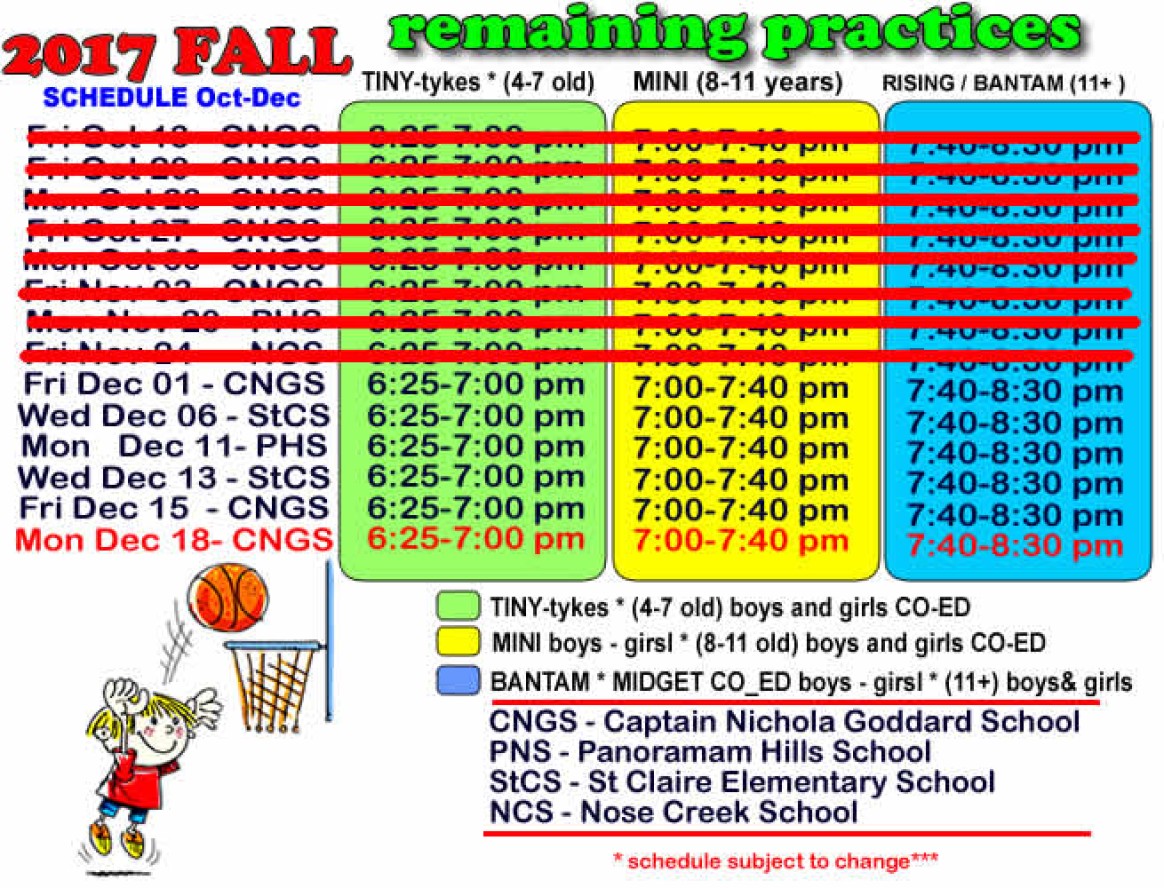 Panorama Hills Basketball – remaining practices for FALL season