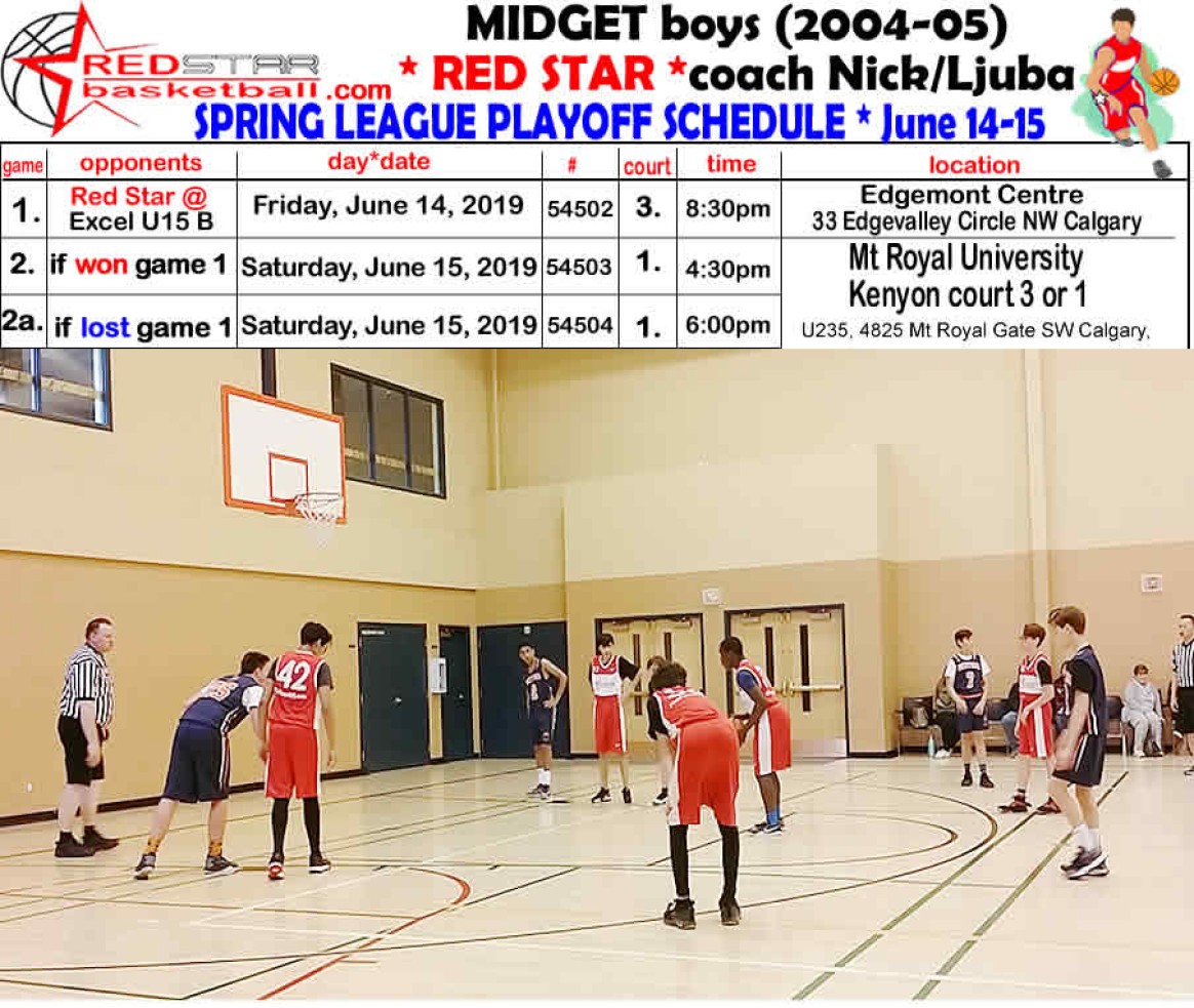 Midget boys will be playing their games @ Mt Royal University on Friday and Saturday June 14-15.. This team was the only team that never played with same players from very first game.. We hope that for the playoff games to see at least complete team playing together.. Good luck and enjoy the games